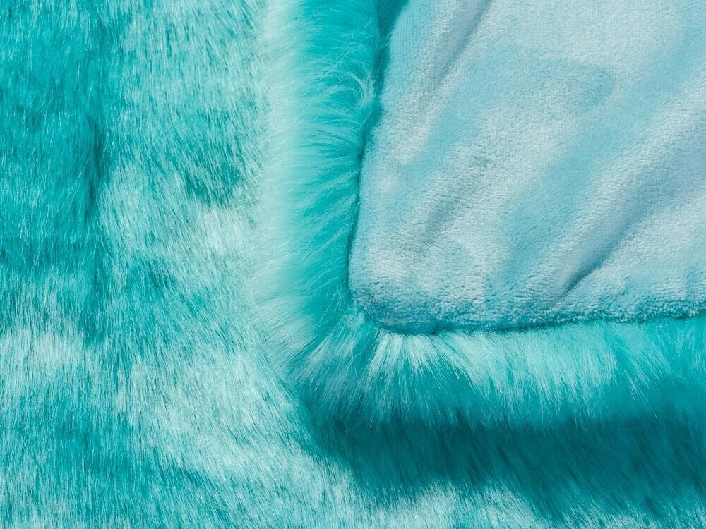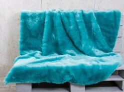 Pad Sheridan Decke aqua. Kuschelig weiche Fell Decke in türkis. Tolle Qualität hochwertig verarbeitet, hergestellt in Europa. Rückseite aus Samt. Größe ca. 140×190 cm.